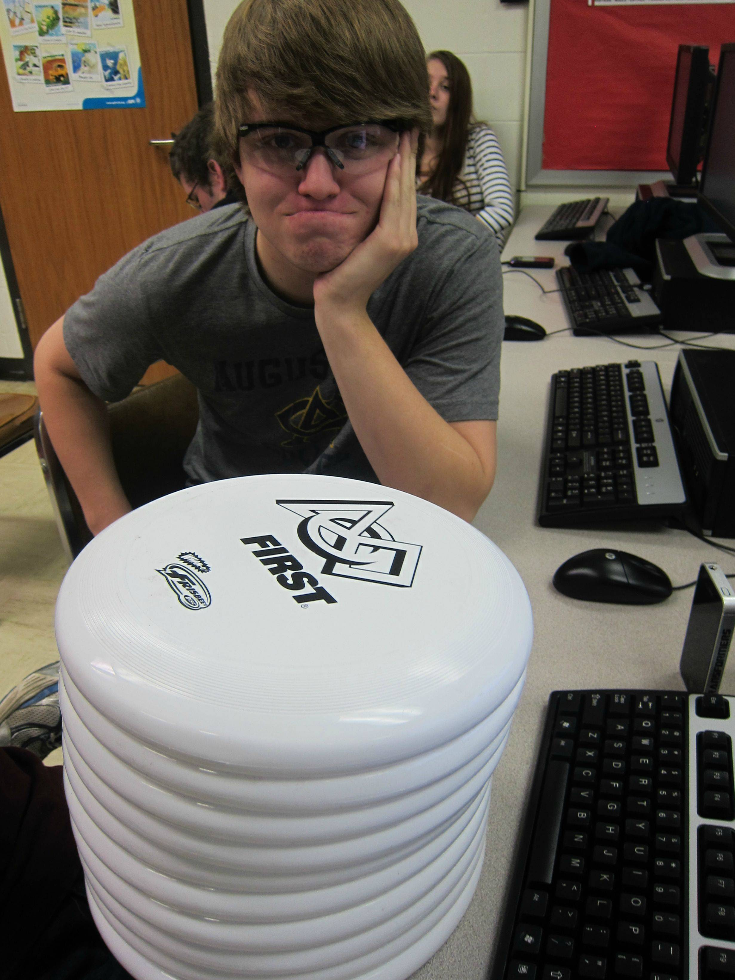 At the end of the night, we were all very tired and received some AndyMark parts. Thus, we goofed around for a while. We played with the frisbees, made funny faces, and even did some "magic" tricks.